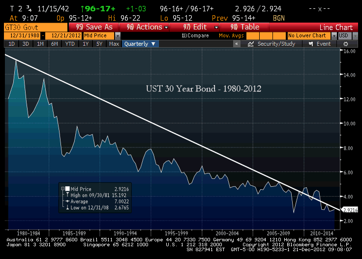 We find the following long term chart of the generic 30-year US Treasury quite revealing.