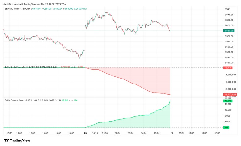 What stood out today was the VIX. Given the magnitude of the decline in oil and the attempted rally in stocks, you’d expect implied volatility to have come down meaningfully. It didn’t. The VIX barely budged. That’s a signal in itself—it tells you that the options market isn’t positioned in a way that would allow a drop in volatility to provide a tailwind for equities. And today’s price action confirmed that. The boost from falling vol that you might typically expect in this kind of setup just isn’t there right now.