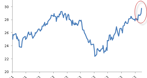 It’s a “risk-on” market right now with the S&P 500 near four-year highs and several market indices reflecting broad risk aversion.