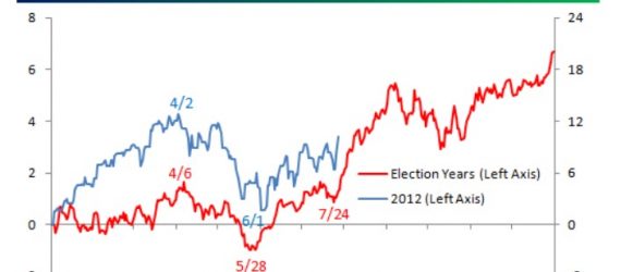Stocks tend to post gains toward the latter part of election years. That may make the case for a potential rally in August and September.