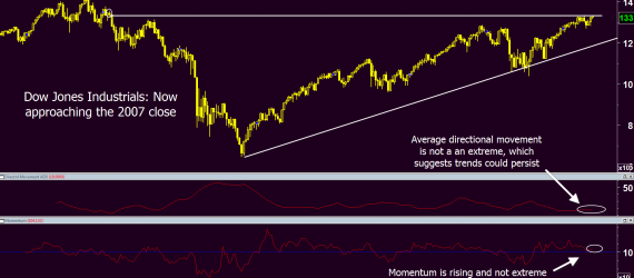 Dow Industrials close in on 2007 levels